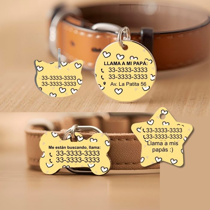🐶🐱 Incluye nombre de tu peludo, datos de contacto y charm decorativo.