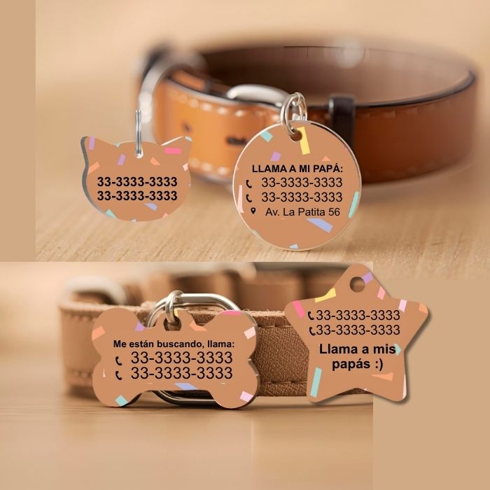 🐶🐱 Incluye nombre de tu peludo, datos de contacto y charm decorativo.
