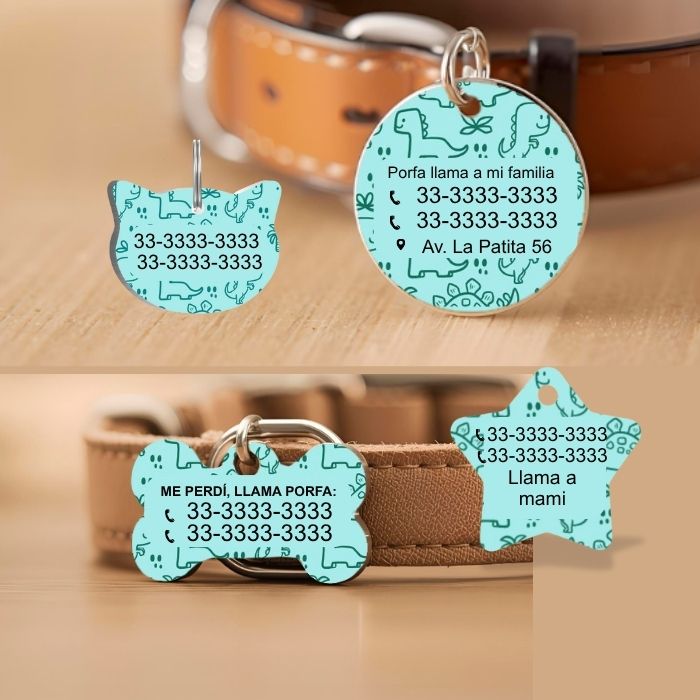 🐶🐱 Incluye nombre de tu peludo, datos de contacto y charm decorativo.